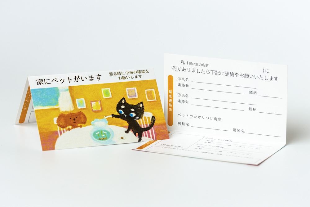 ペット用 緊急情報カード ペット用 緊急情報カード 「飼い主さんにもしものことがあったら…」という状況で活躍するカードの制作を担当いたしました。 内面に自分以外の連絡先やかかりつけのお医者さんの名前や電話番号を書けるようになっています。 用途としてはシビアなケースの際のツールになりますが、そのために”出来るだけ心が温かくなる印象”になる様に努めました。 Client:Petsitter ALDO Views: 200 category: お仕事 グッズ 表紙イラスト 古いエントリーへ 新しいエントリーへ