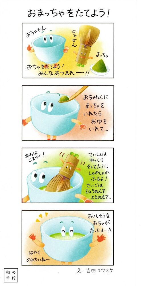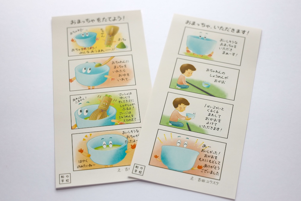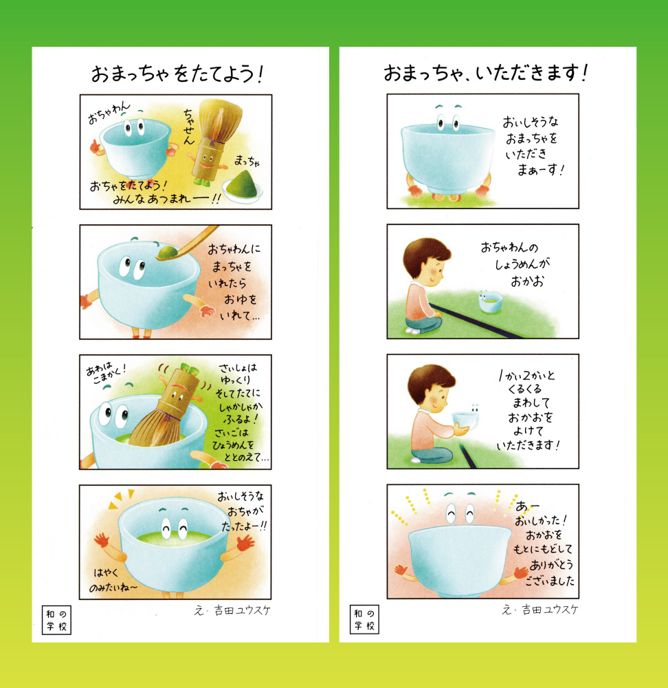 以前作画を担当しました「茶のゆのくに まっちゃマン」に登場したお茶の道具のキャラクターの「ちゃせんちゃん」と「ちゃわわん」が登場しています^^
