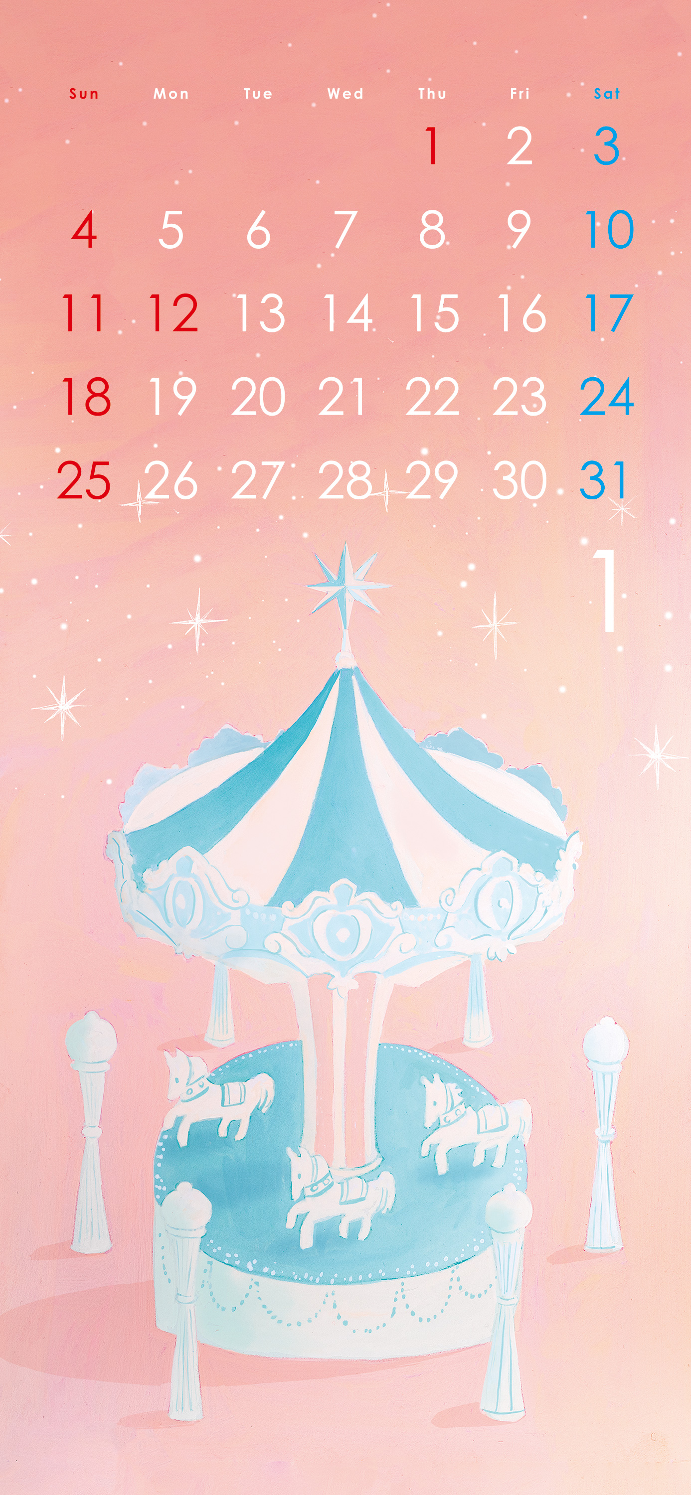 スマホ壁紙 26年1月|merry go round スマホ壁紙 26年1月|merry go round ※クリックして拡大された画像をご使用下さい 2026年 1月のスマホ壁紙です。 午年ということでメリーゴーラウンドを描きました🐎 スマホ壁紙としての使用はフリーです。 それ以外での使用はお控えください。 Views: 248 category: 1月 スマホ壁紙 古いエントリーへ
